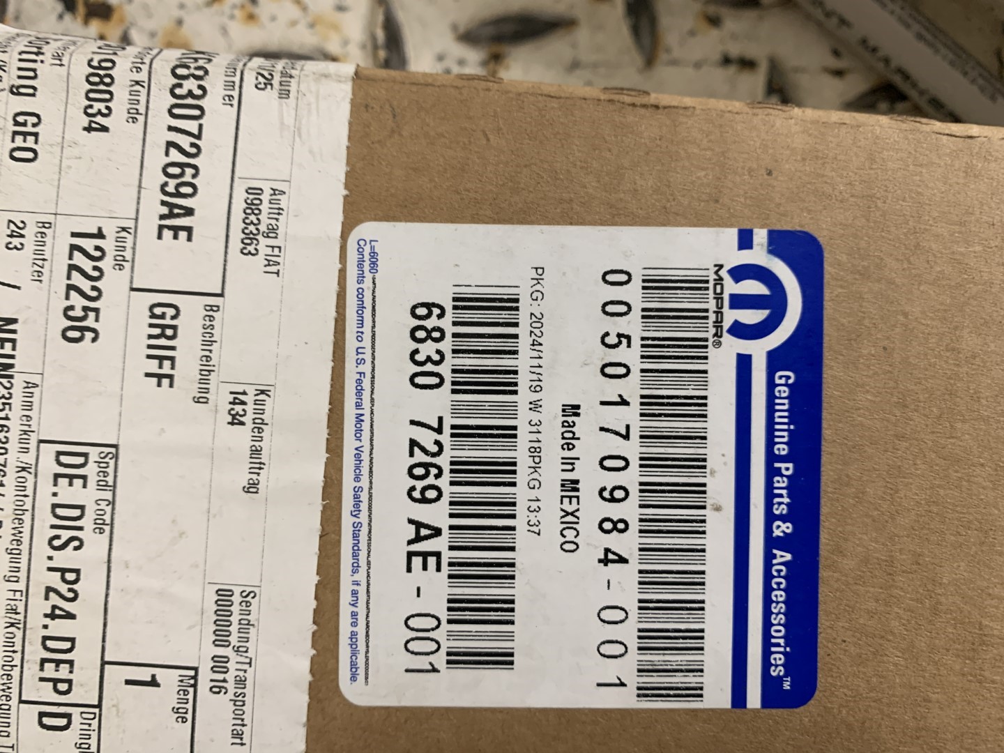 NUMER OEM ( FABRYCZNY CZĘŚCI ):68307269AE / 68307269AA / 68307269AB / 68307269AC / 68307269AD