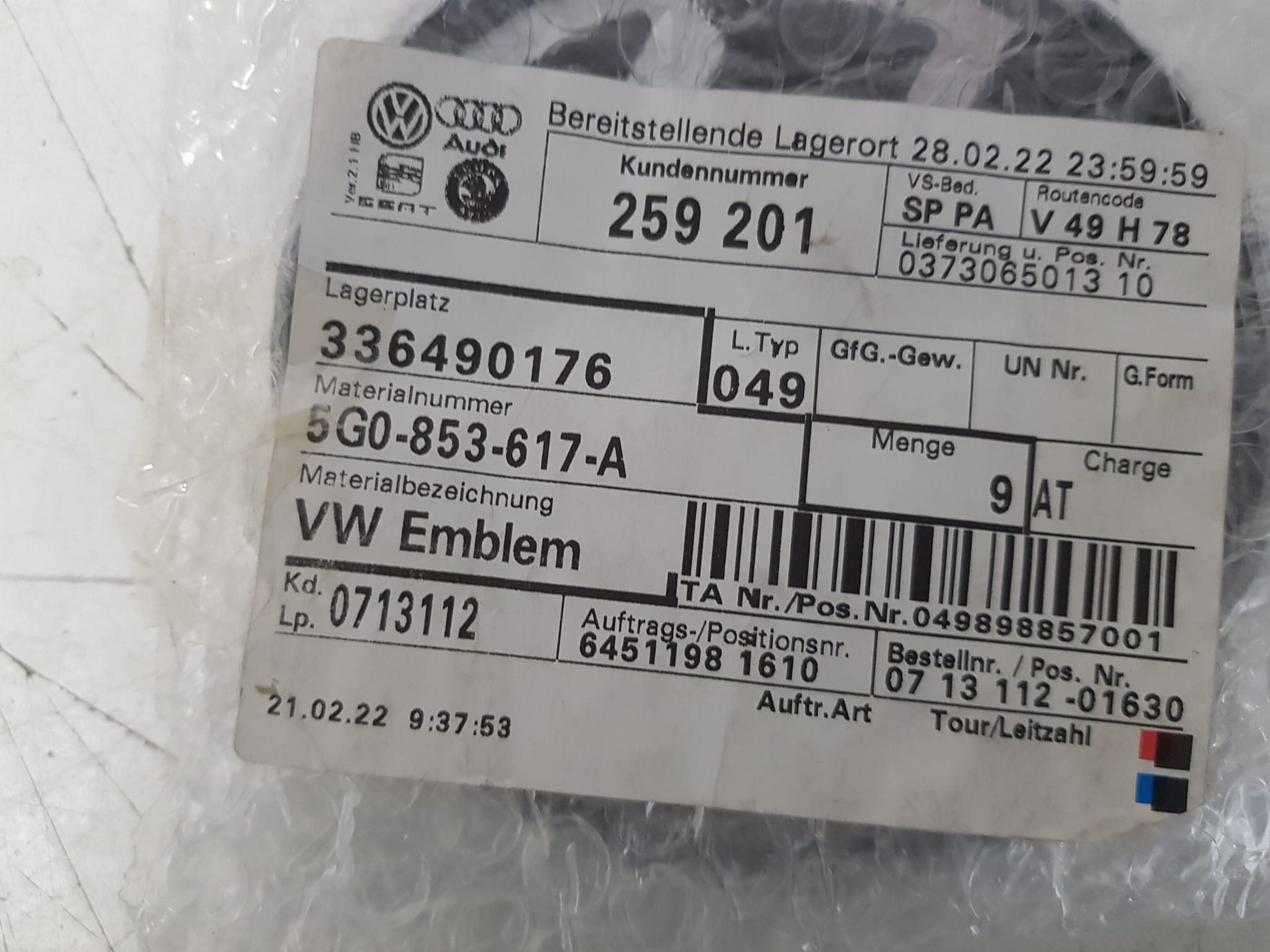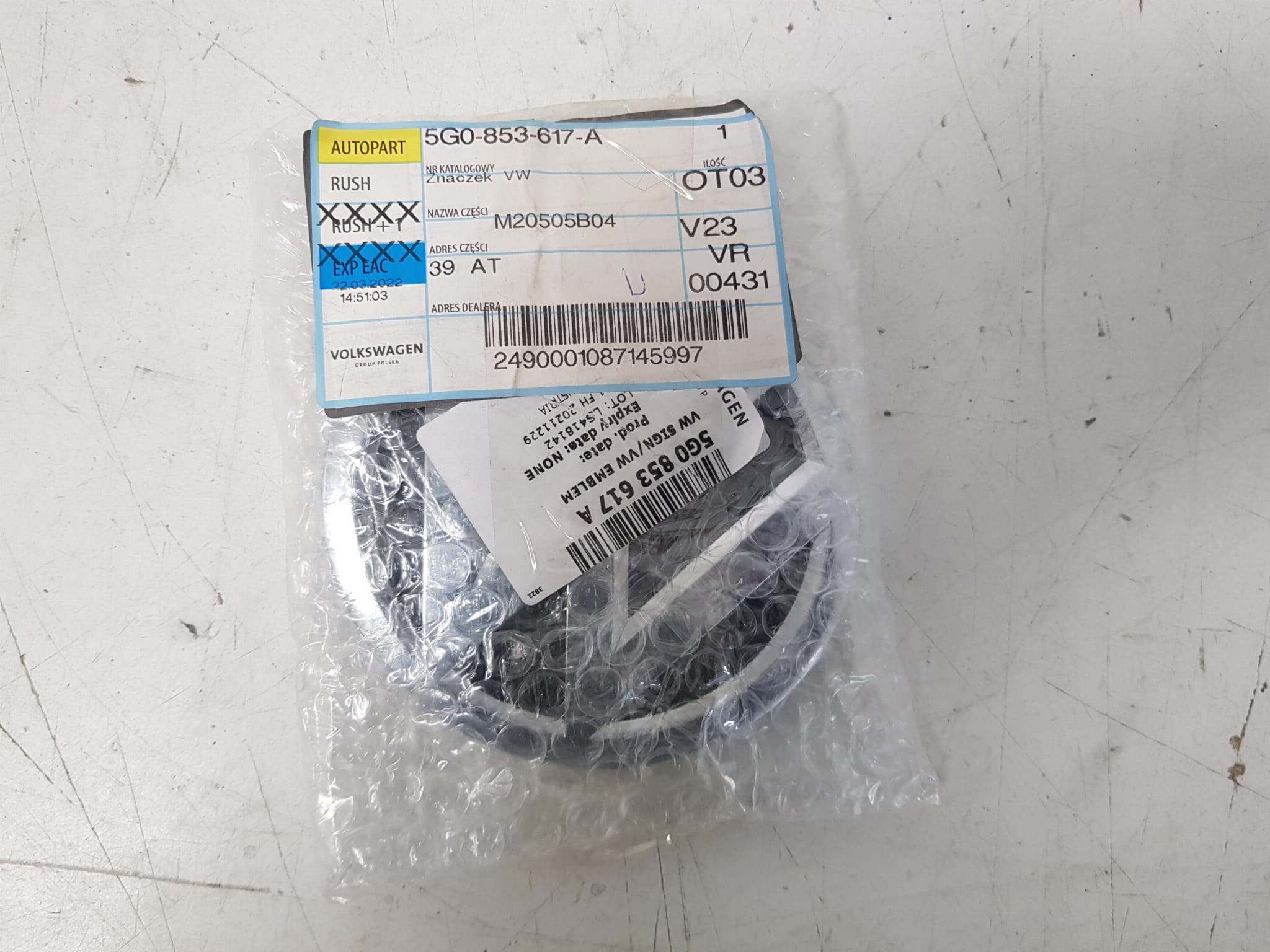 VW GOLF VII 7 EMBLEMAT ZNACZEK KLAPY BAGAŻNIKA TYLNEJ 5G0853617A