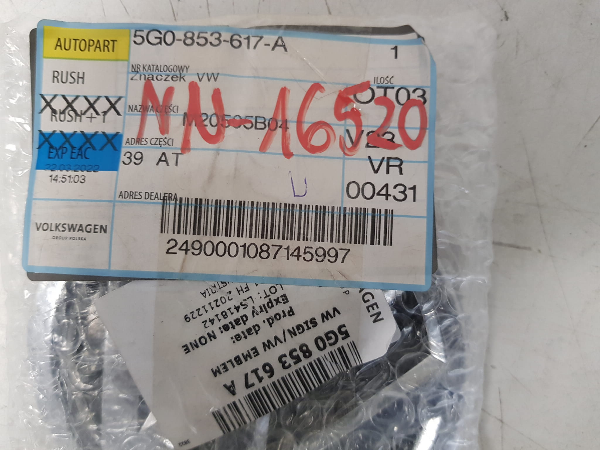 PRODUKT: NOWY, ORYGINAŁ VW.