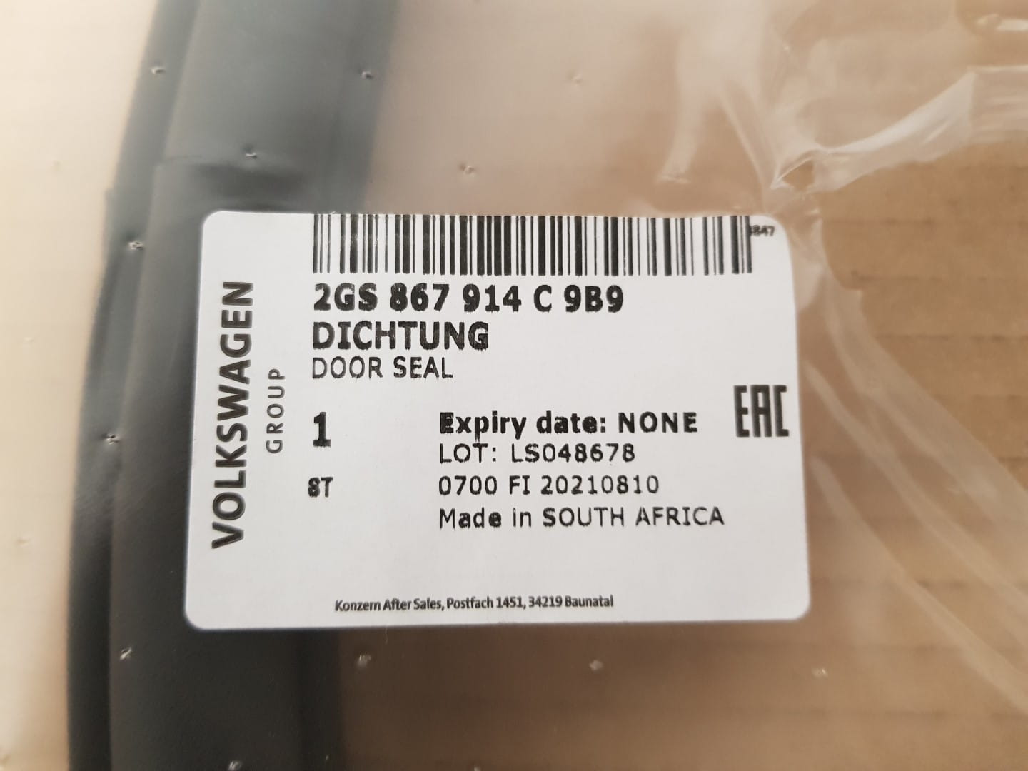 VW POLO VI 2G 2G0 18-23 USZCZELKA DRZWI PRAWYCH TYLNYCH PRAWY TYŁ WEWNĘTRZNA NOWA OEM 2GS867914C9B9 2GS867914C 9B9